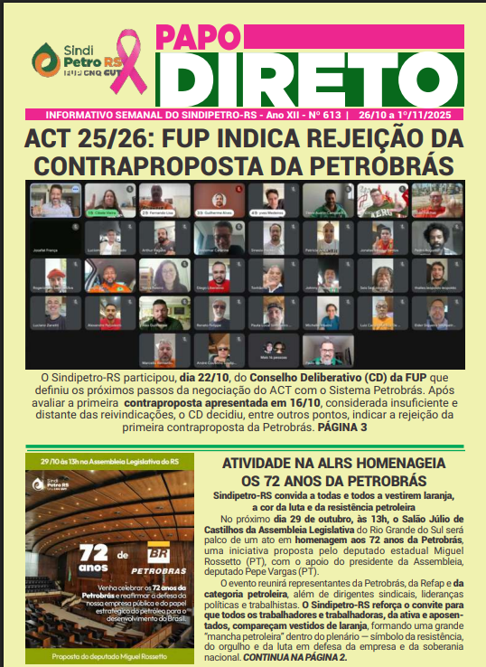 ACT 2025: Contraproposta da Petrobrás frustra a categoria; CD da FUP reúne-se dia 22 para definir próximos passos